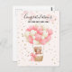 Celebre a chegada de uma doce menina com esta carta adorável com um ursinho de peluche aquoso flutuando num buquê de balão rosa e creme. Dons pontos de confete de ouro e nuvens de pastel macio acrescentam um toque sonhador, caprichoso, perfeito para acolher um recém-nascido ou dar presentes em um chá de fraldas. Personalize o dentro com sua própria mensagem sincera para um cartão verdadeiramente pessoal.