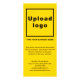 Cartão em rack que você pode personalizar e usar como material de marketing para anunciar sua empresa ou promover seu nome de marca para os clientes. Cartão de rack com o nome da sua empresa para criar reconhecimento de nome de marca. A cor é amarela e a cor da fonte é preta. Para personalizar este cartão de rack, carregue o logótipo da sua empresa, escreva o nome da sua empresa ou empresa, uma descrição curta e atraente da sua empresa, endereço, número de telefone, correio eletrônico e Web site ou página de suporte social. Verifique a aparência após carregar o logotipo e digitar textos. Se a aparência lhe agrada, você pode colocar seu pedido agora. Se você precisar redimensionar e mover o logotipo e as mensagens para o ajustado nesta placa de rack, mude na ferramenta design. Você também pode fazer outras alterações de acordo com sua preferência na ferramenta design, como alterar a cor da placa de rack, a cor da fonte e o estilo da fonte.