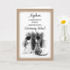 Este é o cartão de parabéns que você precisa para desejar boa sorte ao seu sobrinho na sua graduação na Veterinária. Dois animais de estimação, um gato e um cão, vestindo bonés de formatura, prontos para o veterinário. Surpreenda-o com esta ilustração a preto e branco.