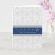 Parabéns ao nosso filho e nora no dia do casamento. Elegante e contemporâneo com padrão clássico de damasco floral vintage em azul-marinho escuro, cinza e branco, a maneira perfeita de dizer o quanto você está orgulhoso neste dia especial.