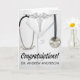 Cartão de congratulações do jaleco branco. O cartão pode ser totalmente modificado. Perfeito para graduados em medicina ou outras ocasiões. Adicione o nome do médico na frente e seu texto dentro. Clique em personalizar para editar este modelo.