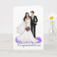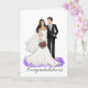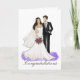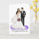 Cartão de congratulações para os noivos recém-casados. Apresenta um casal de morenos vestidos de noiva e noivo. Cartão de saudação fofo para marido e mulher dar ao casal casado. As palavras podem ser alteradas por você. Este cartão de felicitações de casamento é perfeito para incluir com o presente de casamento. Você fará o marido e a mulher verdadeiramente felizes com a mensagem especial que você pode escrever no interior deste cartão de ilustração de casamento.
