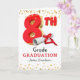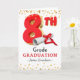 Para ele, Parabéns na graduação do 8º ano, cartão de saudação em papel. Um grande oitavo balão em vermelho e ouro com diploma de graduação e estrelas de ouro. Personalize adicionando um nome ao cobrir. Arte, imagem e direitos de autor versos © Shoaff Ballanger Studios, 2025.