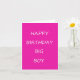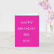 As palavras "Feliz Aniversário Grande Rapaz" escritas em branco contra um fundo cor-de-rosa quente.