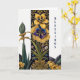 Este cartão floral foi projetado no estilo Art Deco. O uso de tons de amarelo e azul cria uma imagem floral harmoniosa e pacífica, perfeita para acrescentar um toque de beleza e tranquilidade. Os contornos dourados fornecem um belo contraste e acrescentam um toque de luxo e elegância à carta.