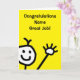 Cartão de desenho animado fofo com um rosto sorridente feliz saltando da lateral do cartão e acenando. O cartão tem um fundo amarelo, mas é fácil editar para uma cor diferente. Cartão de Parabéns Muito Bem Feito. Personalize facilmente este cartão editando o texto do modelo na frente e dentro. Obrigado por ver meus designs!