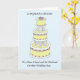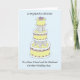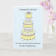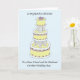 Um bolo de noiva de cor pastel e as palavras "Parabéns a um Caro Amigo e seu marido no Dia do Casamento".
