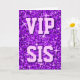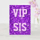 Cartão de saudação com um design moderno impresso com estrelas espalhadas sobre um padrão estilizado de "aparência sequencial" e "VIP SIS" escritos em tons de roxo e lilás. Um design personalizável para você personalizar com seu próprio texto, imagens e ideias. Por favor, note que esta é uma imagem digital impressa. O produto não brilha ou contém cinzas ou sequências reais.
