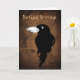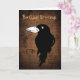 Imagem de um corvo preto com um grande bico branco. Parece estar sorrindo sobre alguma coisa. Fundo de papel desbotado. Mensagem dentro diz: Parabéns e muito mais, mas talvez você nunca mais envelheça.