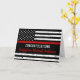 Diga parabéns para o formando da academia de fogo com este cartão de Parabéns de Graduação de Bombeiros da Linha Vermelha Thin, EUA, design de bandeira americana em cores de Fireman, design angustiado. Personalize o dentro com sua mensagem pessoal. Veja nossa coleção para convites de formatura de bombeiros, presentes de graduação, favoritos para festas e suprimentos da academia de bombeiros. COPYRIGHT © 2020 Judy Burrows, Black Dog Art - Todos Os Direitos Reservados. Placa de Parabéns da Linha Vermelha para Graduação do Bombeiro