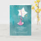 Um bebê doce é embrulhado em rosa e pendura sobre uma grande estrela branca, com estrelas menores em cascata. Envie esta carta de parabéns no seu primeiro excelente.