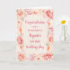 Parabéns no cartão do dia do casamento para a meia-irmã com lindas flores cor-de-água rosa e verso sentimental.