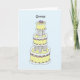 Um exemplo de um bolo de cor pastel de na moda multi-hierarquizada, acompanhado da palavra "Onnea", que significa "Parabéns em finlandês". A imagem tem um fundo azul pálido e colorido.