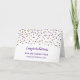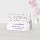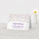 Parabéns no cartão do dia do casamento para madrinha com confete roxo e ouro e verso sentimental.