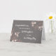 Parabéns no cartão do dia do casamento para a afilhada com cinzas e flores cor-de-rosa e verso sentimental.
