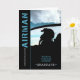Este cartão de parabéns é para o formando de treino básico militar e apresenta uma silhueta de um piloto de combate a jato em paleta azul-céu, branca e preta.