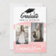 Cartão com fotos Pink Watercolor Formando Parabéns 2. Tendy pink watercolor stripes. Personalize com 2 fotos e o nome do formando na frente e a mensagem na parte traseira da placa ou apague-a.