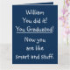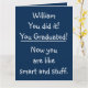 "Você conseguiu! Você se formou! Agora você é esperto e tal." Engraçado, humorístico, hilário, divertido, azul marinho, personalizado, personalizado, grande cartão de parabéns de graduação BIG, com uma bela saudação / dentro de mensagens. Cartão de saudação divertido para rapazes, raparigas, crianças, adolescentes, estudantes, licenciados em jardim de infância, segundo grau médio ou médio, universidade ou universidade. Excelente por felicitar formandos de todas as idades.