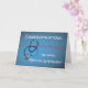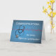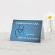 Uma cruz médica é sutilmente mostrada no fundo azul. Uma onda vermelha de batimento cardíaco é mostrada em um gráfico de fundo. O estetoscópio está cruzando o batimento cardíaco. Cartão de parabéns perfeito para um homem ou uma mulher que está entrando em um Internato Médico.