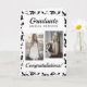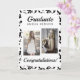 Placa de colagem de fotos do Formando 2 dos Parabéns de padrões Rococo. Trendy e padrão rococó preto na moda. Personalize com 2 fotos e o nome do formando na frente e a mensagem dentro a placa ou apague-a.