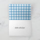 Pegadas de bebês recém-nascidos em texto de parabéns sobre um fundo de gingham azul e branco para o novo bebê.