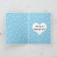 Um cartão de saudação com um porco rosa cartoon digital com pequenas asas brancas, sobre um fundo coberto por um confetti azul Adicione seu próprio texto para se adequar às suas necessidades!