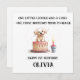 Felicite a criança de um ano com este cartão especial e personalizado de parabéns, o primeiro cartão de parabéns de aniversário dizendo: "Uma pequena vela e um bolo, um primeiro desejo de aniversário". Personalize com o nome da aniversariante ou do menino. Design de cachorrinho bonito.