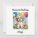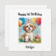 Felicite a criança de um ano com este cartão especial e personalizado de parabéns, o primeiro cartão de parabéns de aniversário dizendo: "Uma pequena vela e um bolo, um primeiro desejo de aniversário". Personalize com o nome da aniversariante ou do menino. Design de cachorrinho bonito e colorido.
