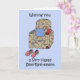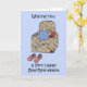 Uma carta divertida para desejar a qualquer um uma aposentadoria muito feliz. Uma poltrona de cartoon cheia de pantufas, controle remoto e caneca.