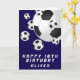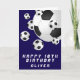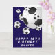 Dark Blue Soccer Futebol Ball Kids Boy Happy Birthday Card. Personalize com seu nome e faça um legal cartão de aniversário para um jogador de futebol ou fã de futebol.