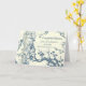 Parabéns no cartão do dia do casamento para irmã com flores azuis e verso sentimental.
