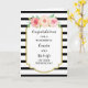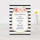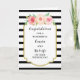 Parabéns no seu cartão de dia de casamento para primo e esposa com listras negras e brancas e flores rosa-d'água, e verso sentimental.