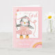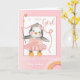 É uma Menina, "Bem-vinda ao Mundo" cartão de congratulações para os pais no nascimento de sua filha tem um adorável pinguim vintage girando uma fita. Personalize com o nome da nova menina.