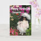 Uma bonitinha preta no estilo vitoriano vestida entre flores com o texto Feliz Aniversário Filha