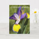 Cartão de parabéns com tema Floral que apresenta uma imagem fotográfica de uma flor Íris roxa e amarela, bicolor e sem barba. Selecione entre um cartão de estilo mate ou brilhante.