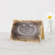 Apresentando o desenho original do rosto da alça". O interior diz "Seja feliz".