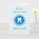 Perda que o primeiro dente é uma celebração real! Felicite o menino ou a menina nova com este cartão bonito do dente em um fundo azul da xadrez.