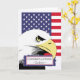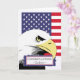 Parabéns Godson. Cartão de saudação em papel apresenta uma águia careca e a bandeira americana. Design contemporâneo e ousado para parabéns de formação básica. Imagem e direitos de autor © Shoaff Ballanger Studios.