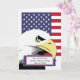Frente personalizada, adicione seu texto ao cobrir deste cartão de saudação de parabéns para alguém que foi aceito em uma academia de serviço federal, faculdade militar, etc. Ilustração de uma águia careca e a bandeira americana no cobrir. Arte, imagem e direitos de autor versos © Shoaff Ballanger Studios, 2022.