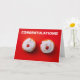Finalmente, parabéns pelo seu cartão de cirurgia superior! O cartão perfeito para um amigo, ente querido ou parente transgênero que fez a cirurgia superior. A frente do cartão tem uma imagem de dois pãezinhos glaçados cobertos com cerejas, em um fundo vermelho, com letras brancas em negrito que dizem: Parabéns. Dentro do cartão está escrito: Parabéns pela sua cirurgia superior, desejamos uma recuperação rápida. Este cartão pode ser facilmente personalizado para se adequar a qualquer gênero e tipo de cirurgia superior.