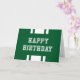 Cartão de aniversário de estilo variado com as palavras "Parabéns" e listras em branco contra uma cor de fundo editável (clique em personalizar para mudar) que seja perfeita para atletas ou treinadores. Para adicionar texto ao dentro da placa, clique no botão "Personalizar". *Observe que a Marca d'água do Zazzle que aparece na visualização de zoom NÃO aparecerá no produto impresso final. © Rosewood e Citrus