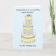 Um bolo de casamento de vários andares, limão e branco, colocado contra um fundo de cor azul pastel. As palavras 'Parabéns à sobrinha especial e ao seu marido no dia do casamento' acompanham a imagem.