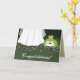 Um cartão de parabéns por casamento de conto de fadas. A bela princesa e seu príncipe sapo. O texto interno diz “desejando a vocês um para sempre feliz”. Este texto pode ser alterado e personalizado com seu próprio sentimento. Um cartão engraçado de parabéns pelo casamento para o feliz casal recém-casado. Visite o Mundo de Doodle da Jenn para ainda mais cartões de casamento engraçados e designs fofos de noiva e noivo.