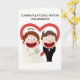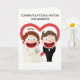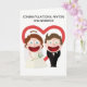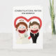 Este lindo cartão é para aquele casal especial que entrou no casamento após o seu alegre noivado. Talvez você tenha estado lá no dia do casamento deles ou talvez não, mas independentemente disso, você quis enviar um cartão que diga o quanto você se importa. Do lado de fora há um design limpo e moderno de uma noiva e um noivo elegantes, mas eles são estilo anime, cartoon, com sorrisos largos. É engraçado, com toques bobos, mas principalmente moderno. No verso há um coração inspirado em aquarela, também em estilo anime, mas nós encorajamos você a substituí-lo por uma foto sua para torná-lo ainda mais pessoal. Dentro, nós escrevemos exatamente a mensagem certa para falar ao momento; mas apenas por precaução, caso precise de algo pessoal, você pode personalizá-lo com suas próprias palavras.