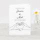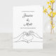 Este adorável cartão de noivado preto e branco apresenta mãos com coração e pode ser personalizado com os nomes do casal e uma mensagem especial dentro. Para personalizar, basta clicar em 'personalizar este design' e inserir seus dados, e a Zazzle fará o resto.