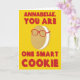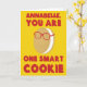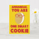 Crie um cartão personalizado para comemorar seu biscoito inteligente. Este cartão bonito apresenta o seu nome e a mensagem "VOCÊ É UM SMART COOKIE" na frente, juntamente com uma ilustração de um biscoito de sanduíche de desenho animado que veste alguns óculos. A mensagem no dentro pode ser personalizada com sua própria mensagem.