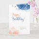 Cartão de aniversário simples, moderno, azul e laranja, espalhado; personalize a frente com o nome, masculino ou feminino; mude o verso dentro, se você quiser.