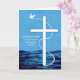 Cartão Parabéns, pomba de batismo e cruz na água