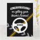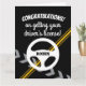 Parabéns por ter obtido a sua carta de condução. Cartão de felicitações divertido com sinais de trânsito e logotipo do volante. Personalizado com nome e mensagem. Perfeito para novos condutores que aprovam no exame. Cartão extra grande para ele ou ela.