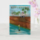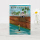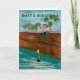 O cartão de aniversário do urso de pelúcia Primeiro bebê. Pintura digital original de Ines Miller; ursinho de pelúcia galopante pescando num porto de madeira. Este cartão de ursinho castanho pode ser personalizado com o seu próprio texto ou mensagem especial. Aproveite! Visite meus outros designs de arte em: https://www.zazzle.com/store/timelessmemories